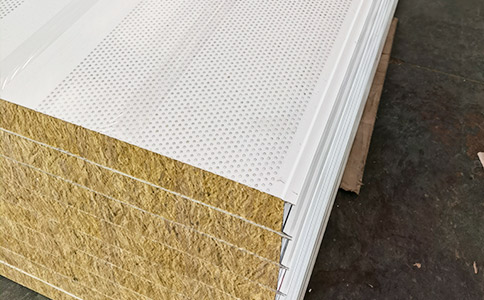 機制巖棉板主要以彩鋼壓型板為面層,結構巖棉為芯層,通過利用特種粘結劑復合而成的一種“三明治”結構板,屬于具有極強防火效果的潔凈板,可四側封堵,在板材中間添入加強筋,使板面平更加平整,強度也更高。